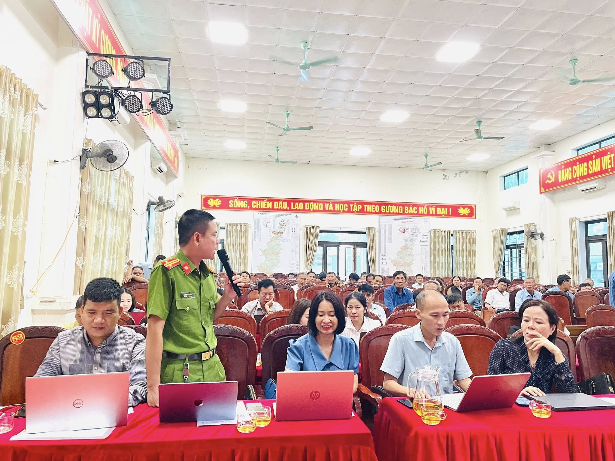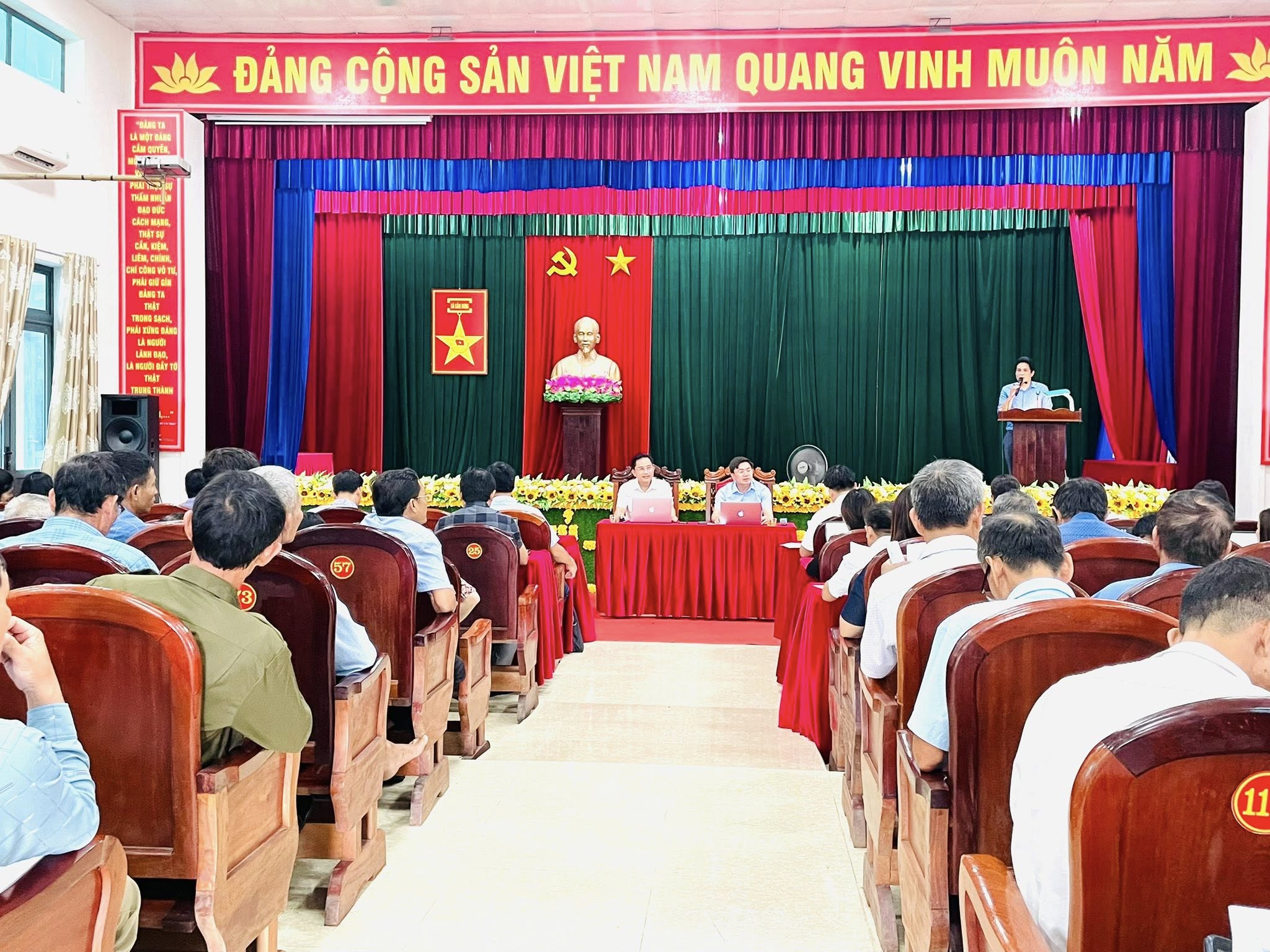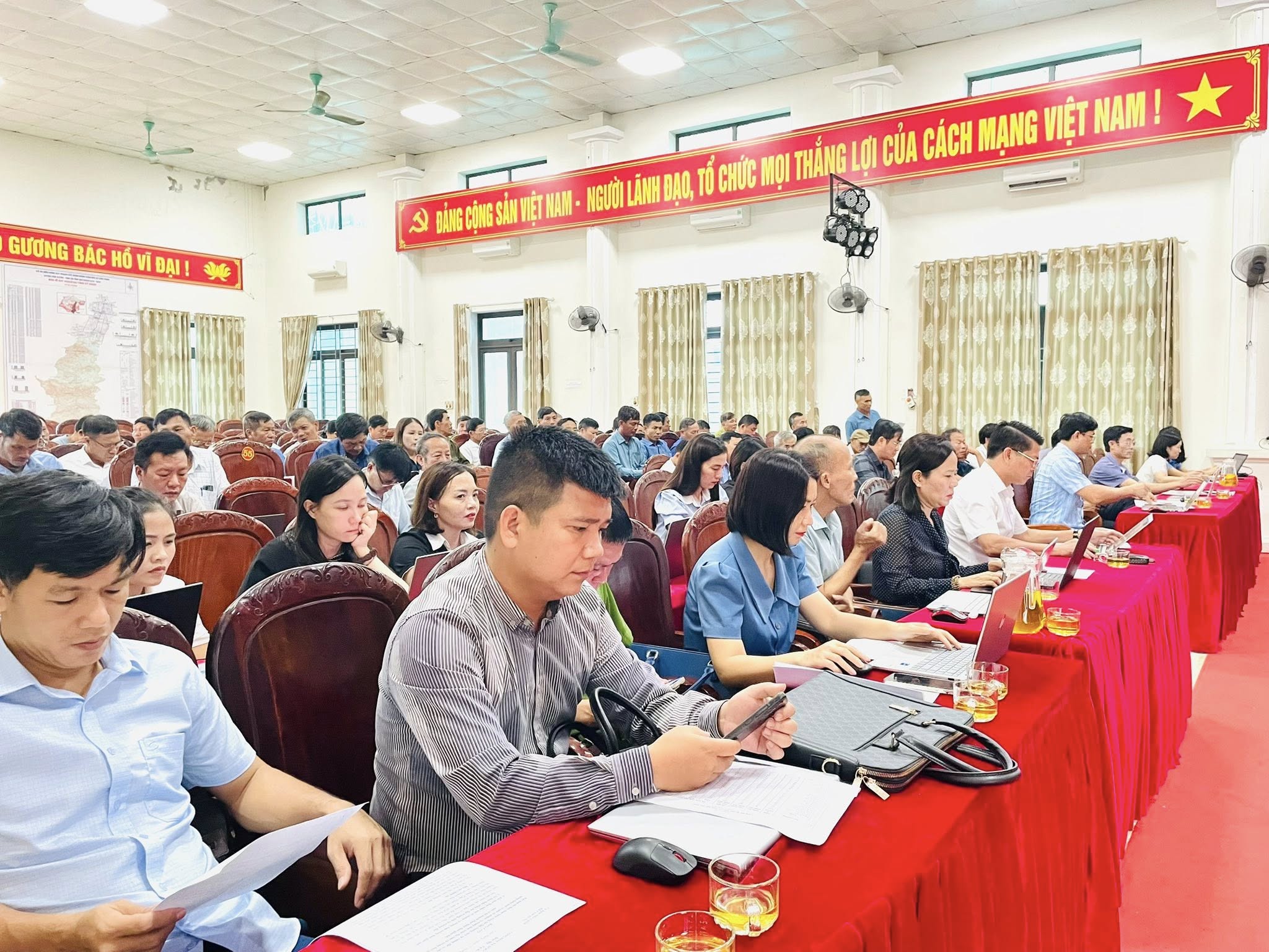 Tham dự hội nghị có các đồng chí: Nguyễn Thanh Long – Bí thư Đảng ủy, Chủ tịch HĐND xã; đồng chí Hà Huy Hùng – Phó Bí thư Thường trực Đảng ủy; đồng chí Lê Ngọc Hà – Phó Bí thư, Chủ tịch UBND xã; cùng các đồng chí trong Ban Thường vụ Đảng ủy, Thường trực HĐND, UBND, Ủy ban MTTQ Việt Nam xã; lãnh đạo các ban, ngành, đoàn thể; trưởng, phó các phòng chuyên môn, lực lượng Công an, Quân sự; các đồng chí trong Tổ công tác Chương trình Mục tiêu quốc gia về xây dựng khu dân cư kiểu mẫu và chuyển đổi, tích tụ ruộng đất nông nghiệp; cùng Bí thư chi bộ, Trưởng thôn, Tổ trưởng Tổ an ninh trật tự các thôn trên địa bàn.
