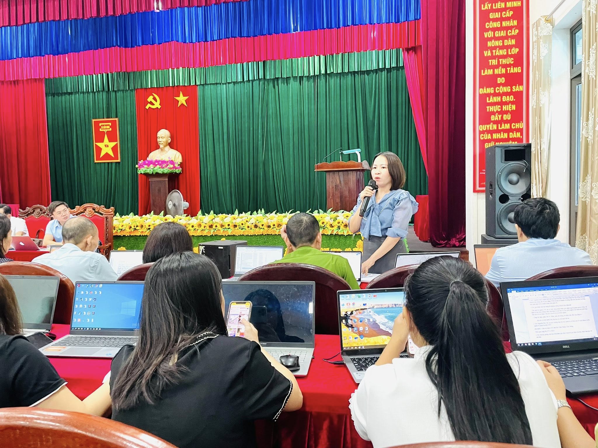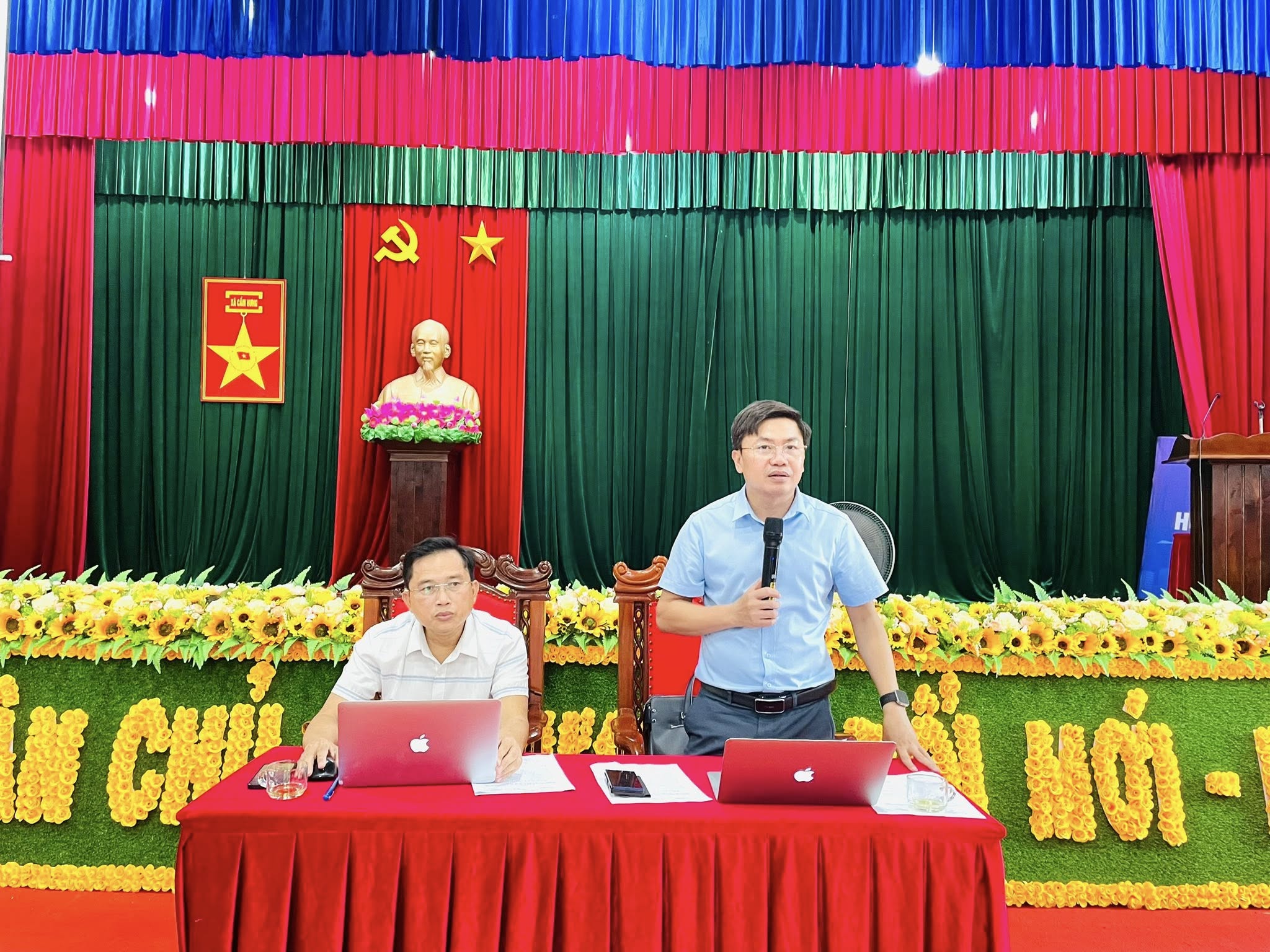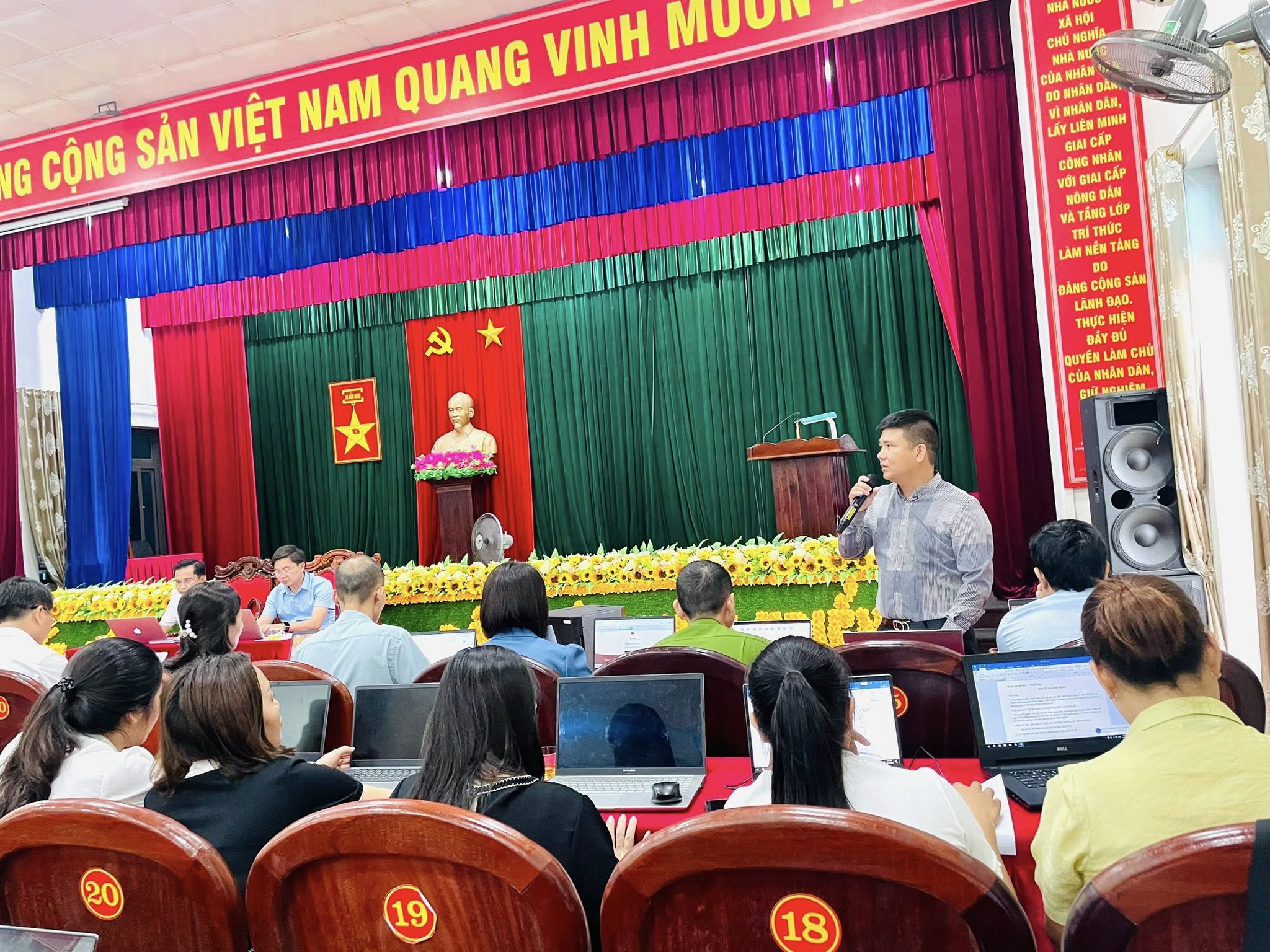 Tham dự hội nghị có các đồng chí: Nguyễn Thanh Long – Bí thư Đảng ủy, Chủ tịch HĐND xã; đồng chí Hà Huy Hùng – Phó Bí thư Thường trực Đảng ủy; đồng chí Lê Ngọc Hà – Phó Bí thư, Chủ tịch UBND xã; cùng các đồng chí trong Ban Thường vụ Đảng ủy, Thường trực HĐND, UBND, Ủy ban MTTQ Việt Nam xã; lãnh đạo các ban, ngành, đoàn thể; trưởng, phó các phòng chuyên môn, lực lượng Công an, Quân sự; các đồng chí trong Tổ công tác Chương trình Mục tiêu quốc gia về xây dựng khu dân cư kiểu mẫu và chuyển đổi, tích tụ ruộng đất nông nghiệp; cùng Bí thư chi bộ, Trưởng thôn, Tổ trưởng Tổ an ninh trật tự các thôn trên địa bàn.