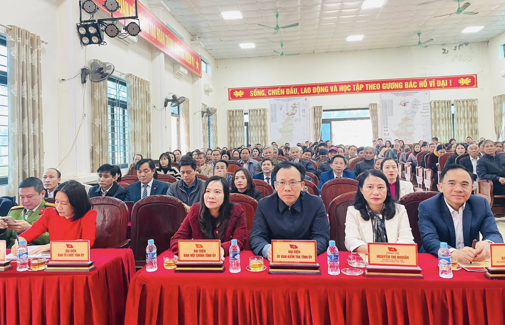 Về phía đại biểu xã có các đồng chí Ủy viên Ban Chấp hành Đảng bộ xã; lãnh đạo các ban xây dựng Đảng, Ủy ban Kiểm tra, Văn phòng Đảng ủy; lãnh đạo Ủy ban Mặt trận Tổ quốc và các tổ chức chính trị – xã hội; lãnh đạo các phòng, ngành chuyên môn thuộc Ủy ban nhân dân xã. Cùng dự có các đồng chí Bí thư, Phó Bí thư, cấp ủy các chi bộ trực thuộc và chi bộ cơ sở; các đồng chí thôn trưởng các thôn trong toàn xã; các đảng viên được trao tặng Huy hiệu Đảng đợt 07/11/2025 và các đảng viên được xếp loại hoàn thành xuất sắc nhiệm vụ năm 2025.