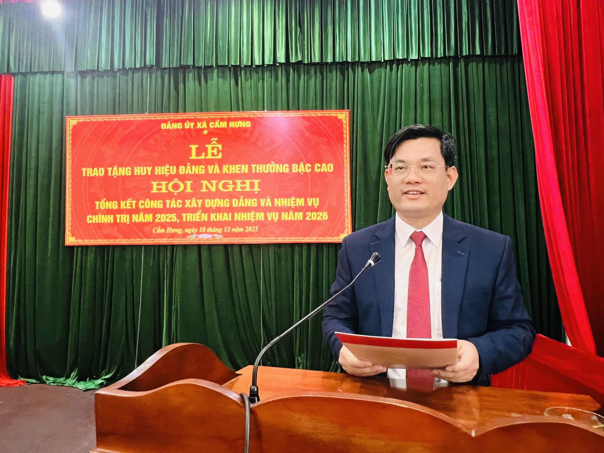 Năm 2025 là năm đặc biệt đối với xã Cẩm Hưng – xã mới được hình thành trên cơ sở sáp nhập 03 xã, với diện tích hơn 103 km², dân số gần 22.000 người; Đảng bộ có 38 chi bộ với gần 1.230 đảng viên. Trong bối cảnh bộ máy vừa sắp xếp, cơ sở vật chất còn thiếu, biên chế chưa đáp ứng, nợ công sau sáp nhập lớn, thiên tai và dịch bệnh diễn biến phức tạp (đặc biệt là bão số 5, số 10 và dịch tả lợn châu Phi), song với sự quan tâm lãnh đạo của tỉnh và tinh thần đoàn kết, quyết tâm của cả hệ thống chính trị, xã Cẩm Hưng đã hoàn thành 31/32 chỉ tiêu chủ yếu, đạt 98,5%.