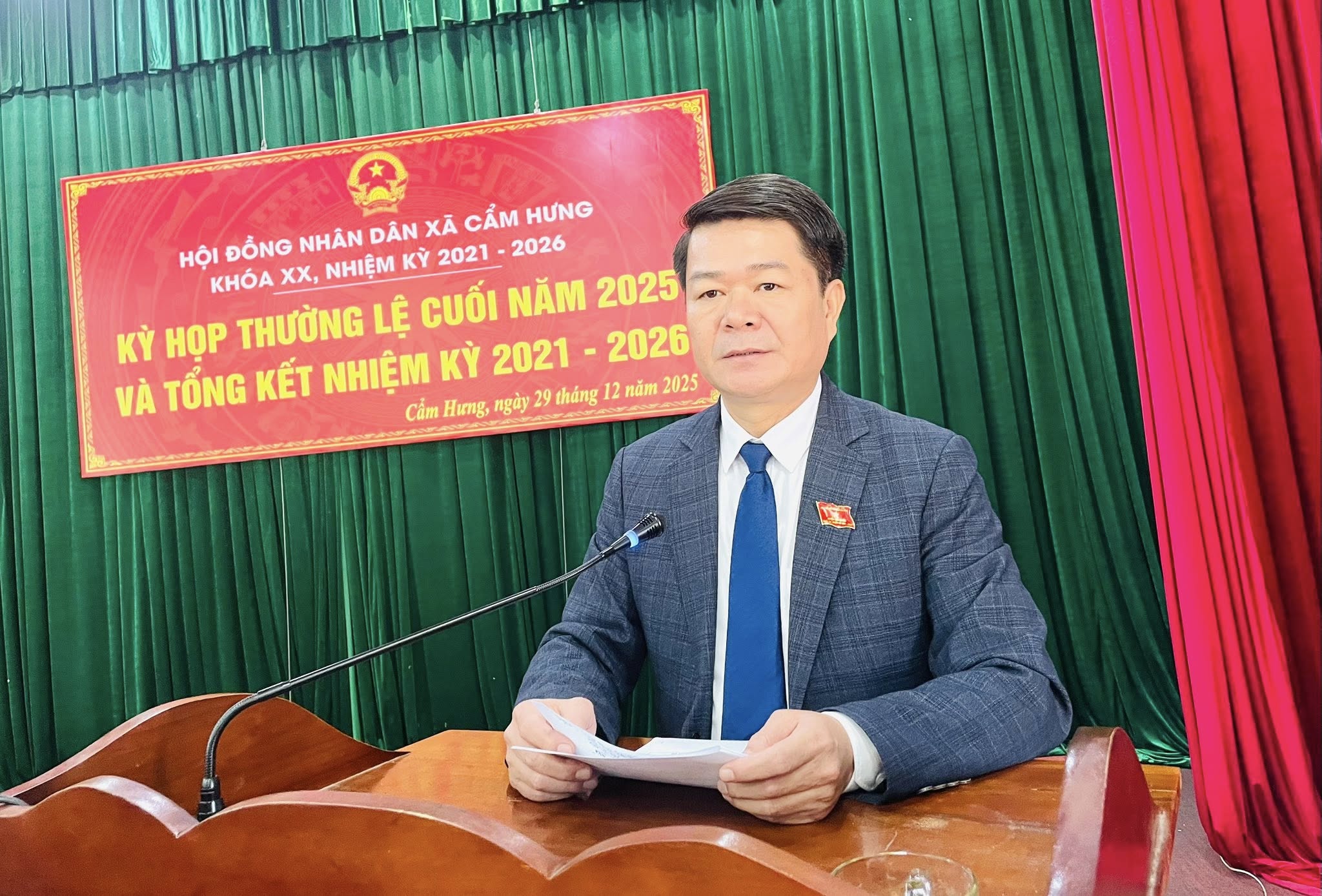 Sau một ngày làm việc nghiêm túc, dân chủ và trách nhiệm, Kỳ họp thứ 5 Hội đồng nhân dân xã Cẩm Hưng khóa XX đã hoàn thành toàn bộ nội dung, chương trình đề ra và thành công tốt đẹp, góp phần quan trọng vào việc nâng cao hiệu lực, hiệu quả hoạt động của chính quyền địa phương, đáp ứng yêu cầu phát triển của xã Cẩm Hưng trong giai đoạn mới.