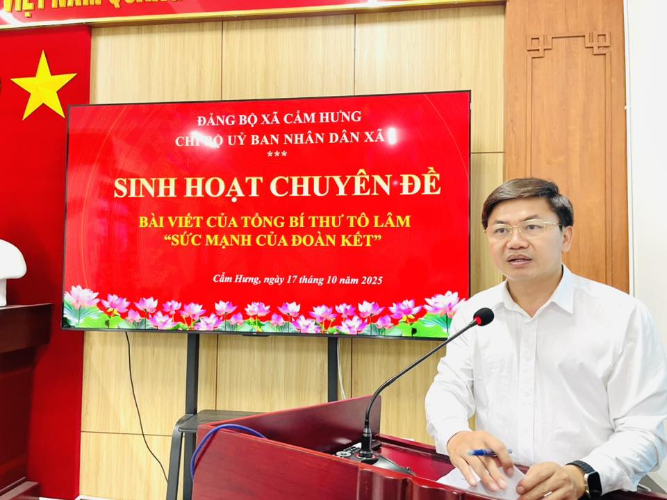 Bài viết “Sức mạnh của đoàn kết” của Tổng Bí thư Tô Lâm không chỉ là kim chỉ nam trong công tác tư tưởng – lý luận, mà còn là nguồn cảm hứng và động lực để Đảng bộ Cẩm Hưng tiếp tục đổi mới, nâng cao chất lượng sinh hoạt Đảng, phát huy sức mạnh đại đoàn kết toàn dân trong thời kỳ mới.